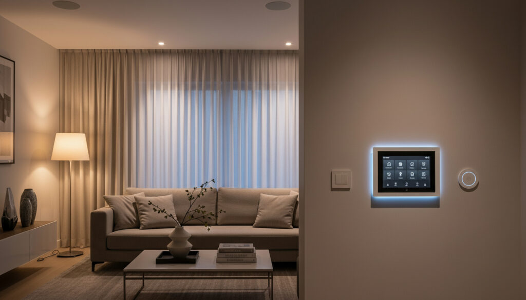 Um único sistema centraliza controle de iluminação, som, climatização e segurança. Isso garante praticidade e reduz o estresse de lidar com múltiplos dispositivos.