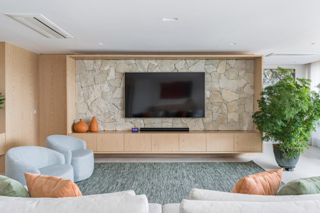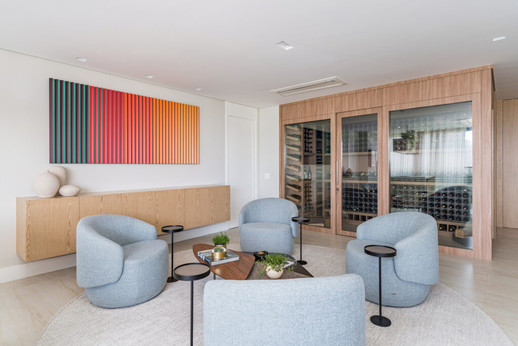 Viver em um apartamento de 250m² no Brooklin é experimentar o equilíbrio perfeito entre sofisticação e bem-estar. A sala integrada com janelas amplas deixa a luz natural ser protagonista, ampliando a sensação de amplitude. A marcenaria personalizada em tons claros conversa com o piso em mármore travertino, criando uma base elegante e acolhedora. As formas orgânicas fluem pelo espaço, enquanto a chapelaria planejada traz charme e funcionalidade já na entrada. Uma adega sofisticada e as obras de arte completam a atmosfera de exclusividade. Um lar pensado para quem valoriza a arte de receber, o design atemporal e o lifestyle contemporâneo que só o Brooklin oferece.