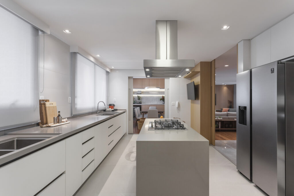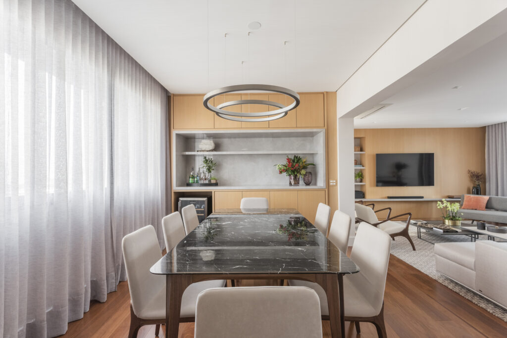 Living fluido, cozinha ampliada e elegância atemporal em SP