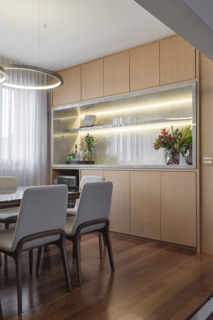 Este apartamento em Higienópolis, bairro nobre de São Paulo, é um exemplo de como a arquitetura de interiores transforma histórias. Originalmente dos anos 80, o imóvel era segmentado e pouco funcional. A reforma abriu vãos, conectou o living à sala de jantar, ampliou a cozinha e introduziu portas de correr piso-teto que permitem total integração. O resultado é um apartamento fluido, leve e prático, ideal para o dia a dia contemporâneo, mas sem abrir mão da elegância e do conforto. Cada detalhe foi pensado para criar uma experiência de morar funcional, sofisticada e atemporal, traduzindo o estilo de vida de quem busca praticidade com sofisticação em São Paulo.